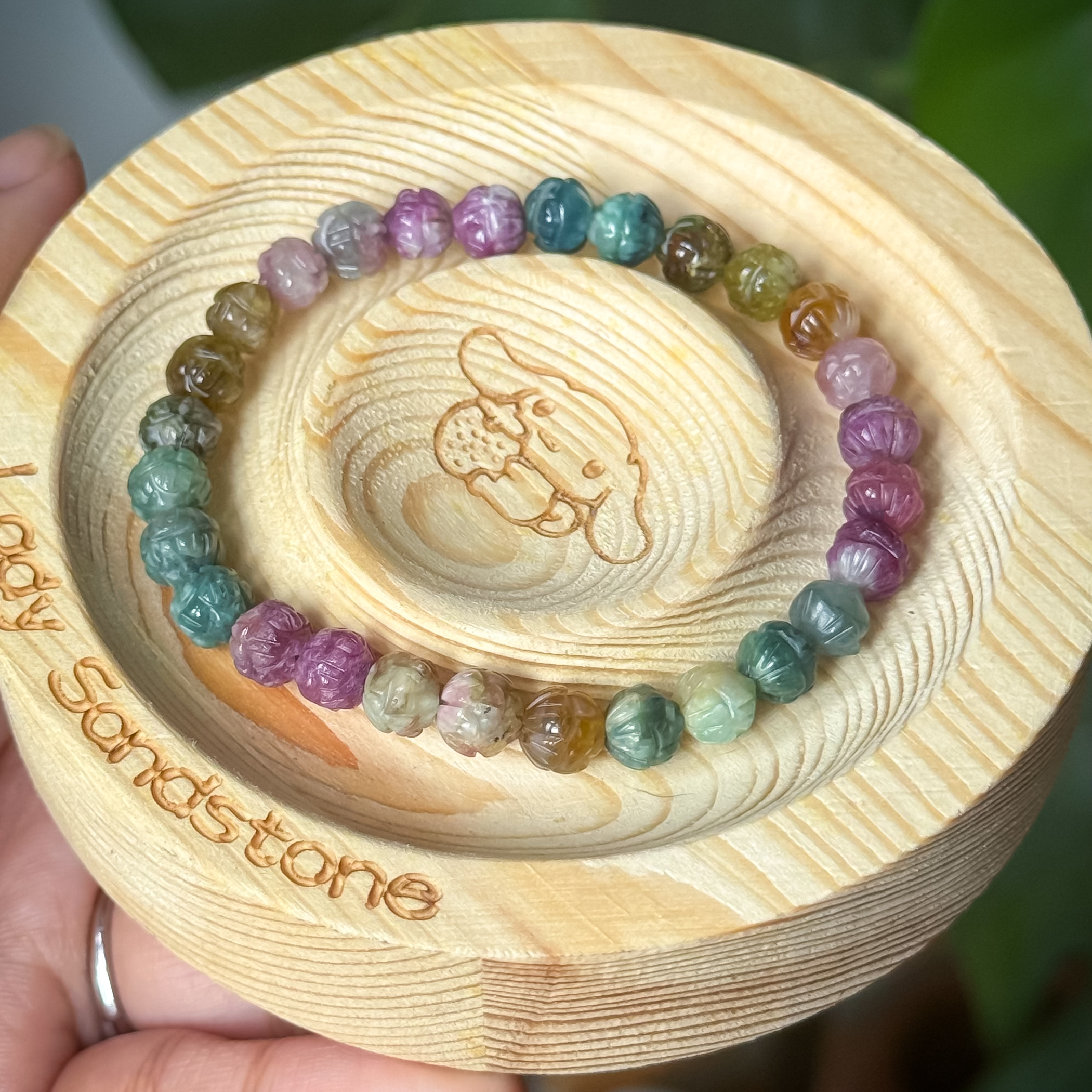 Lotus Carving Tourmaline Bracelet 6.6mm