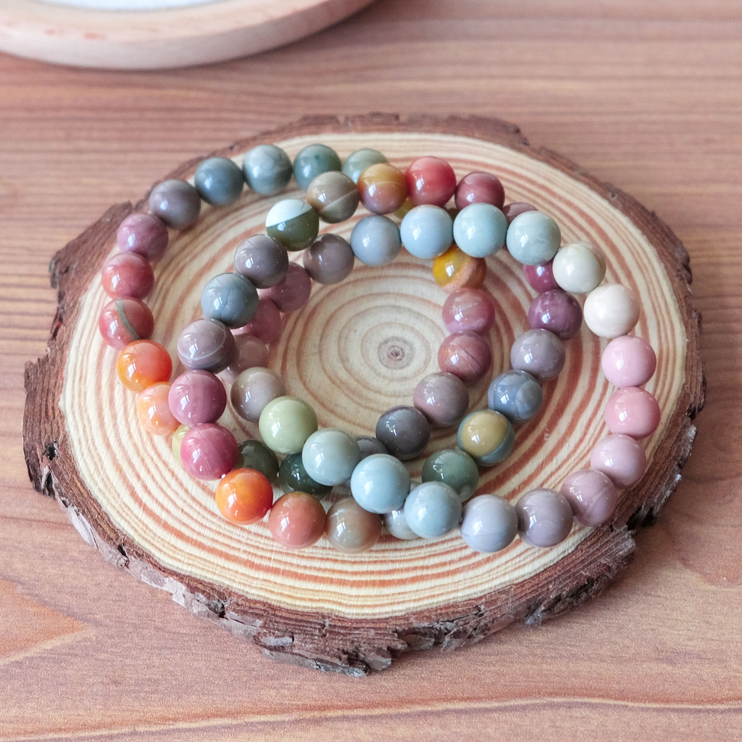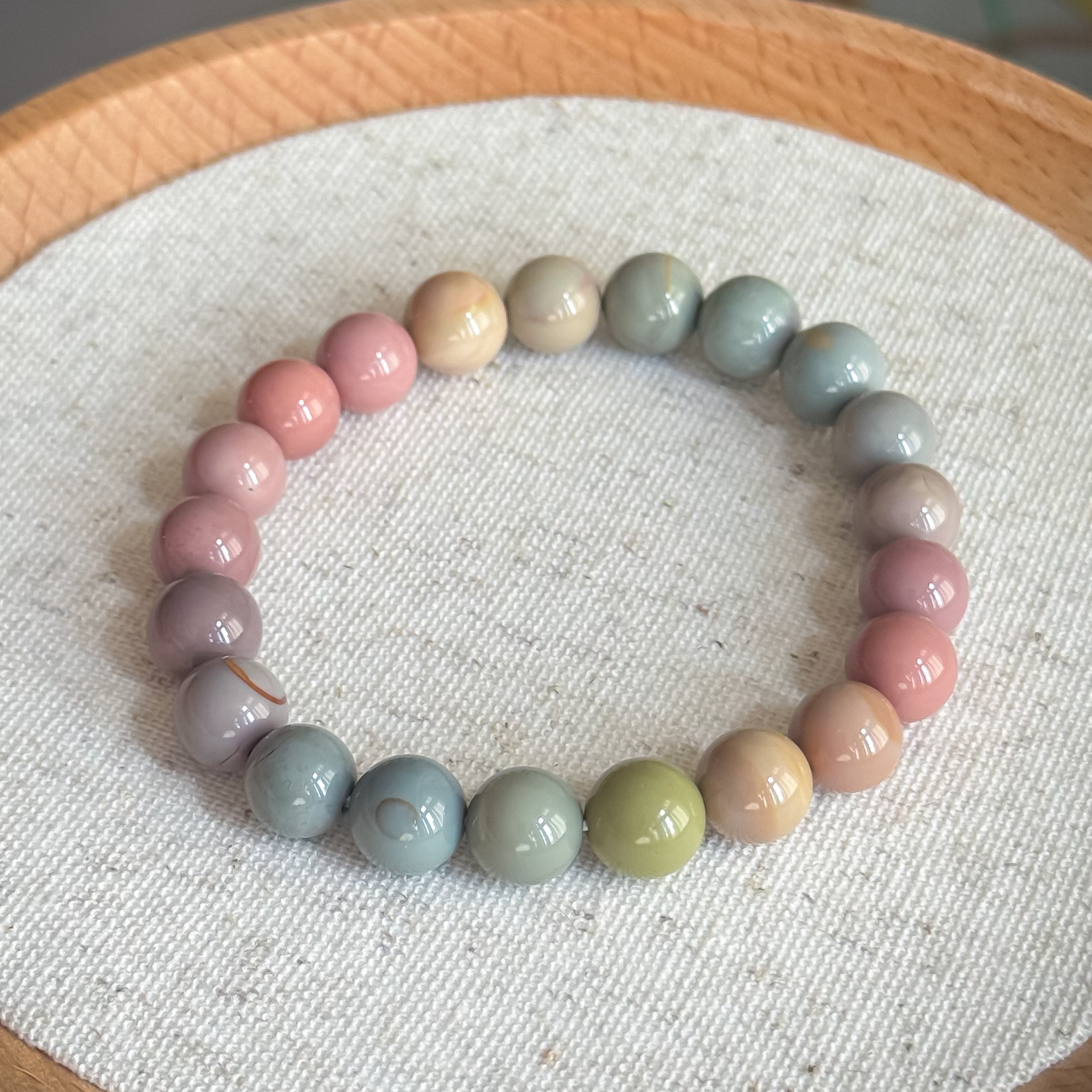 Appears in a wide variety of colors, with each bracelet featuring its own unique mix of gentle, naturally occurring shades.