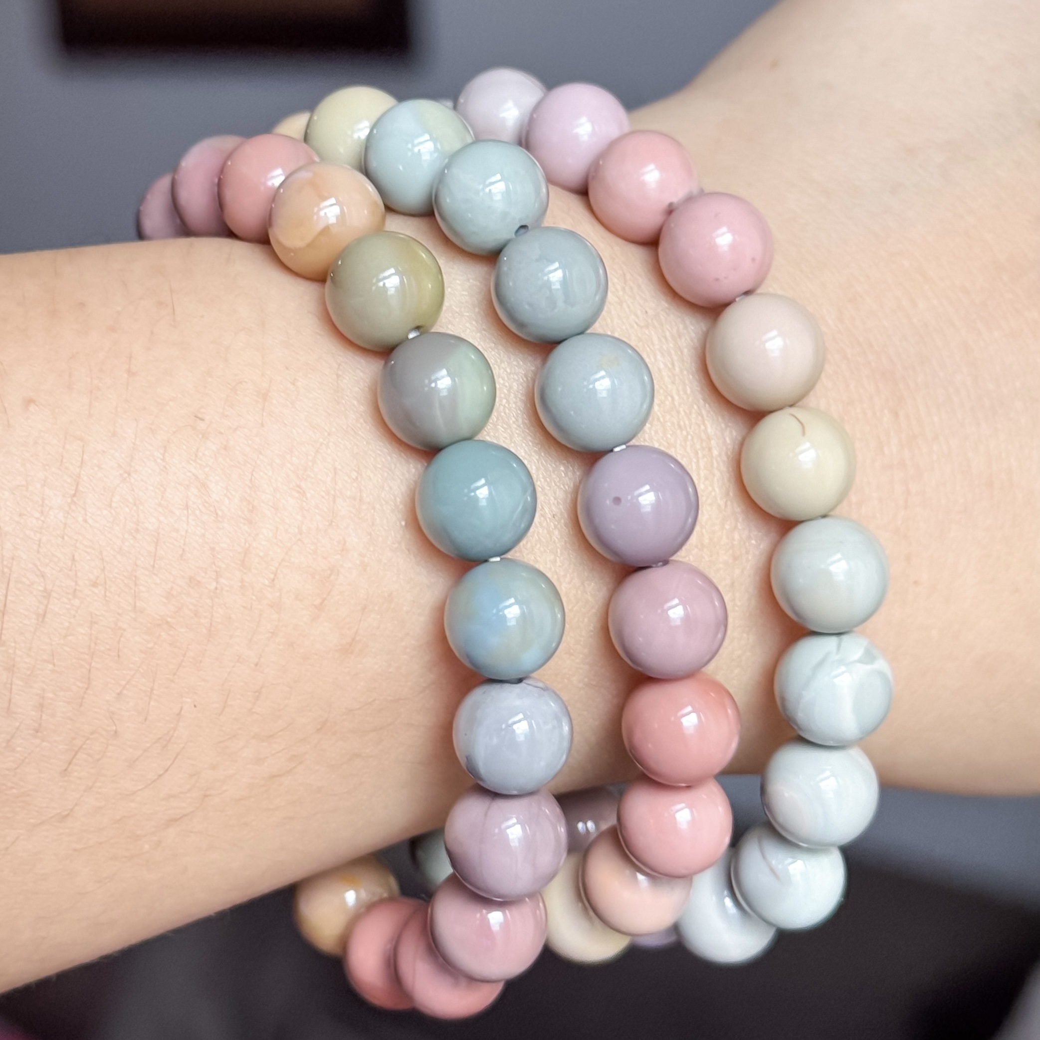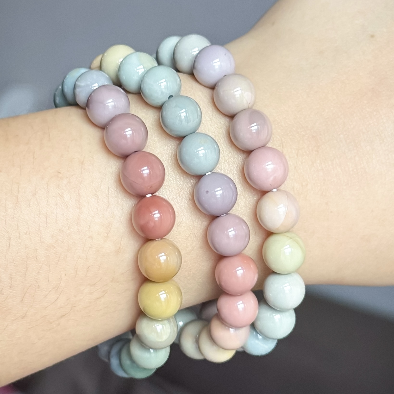 Appears in a wide variety of colors, with each bracelet featuring its own unique mix of gentle, naturally occurring shades.