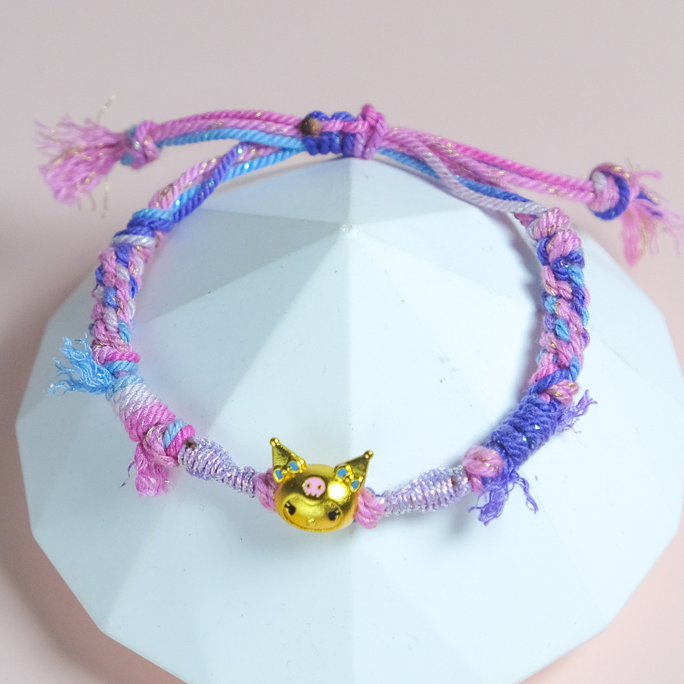 / Twilight Mischief: Handwoven Kuromi Charm Bracelet
